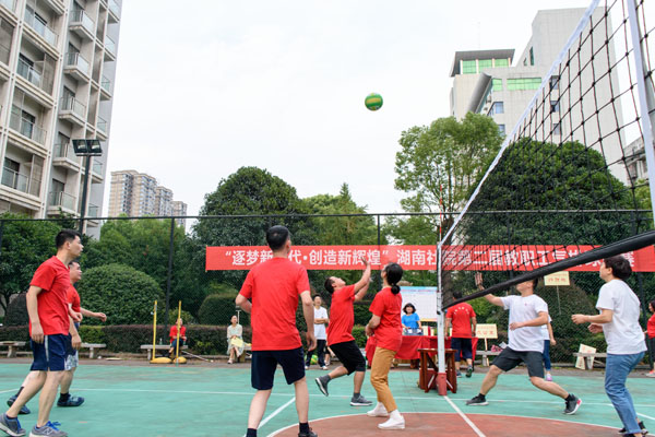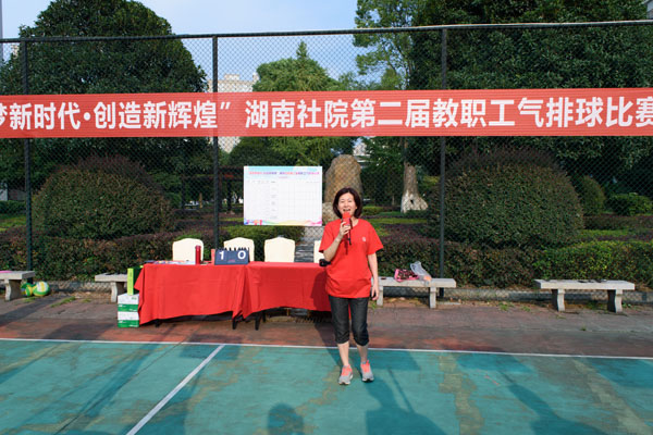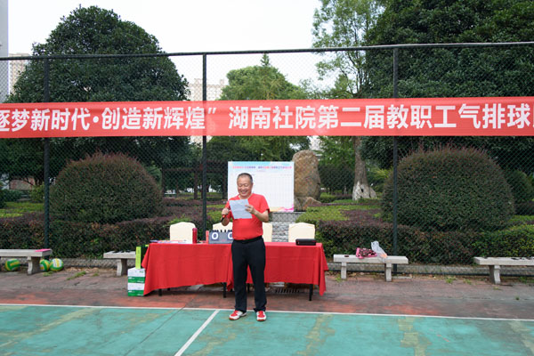 9月10日下午,“逐梦新时代·创造新辉煌”湖南社院第二届教职工气排球比赛举行开幕式,省委统战部副部长、省社院党组书记邓焕生致辞,副院长彭英宣布比赛正式开始。全院干部职工身着红白色文化衫依次入场,裁判员当场宣读比赛规则。