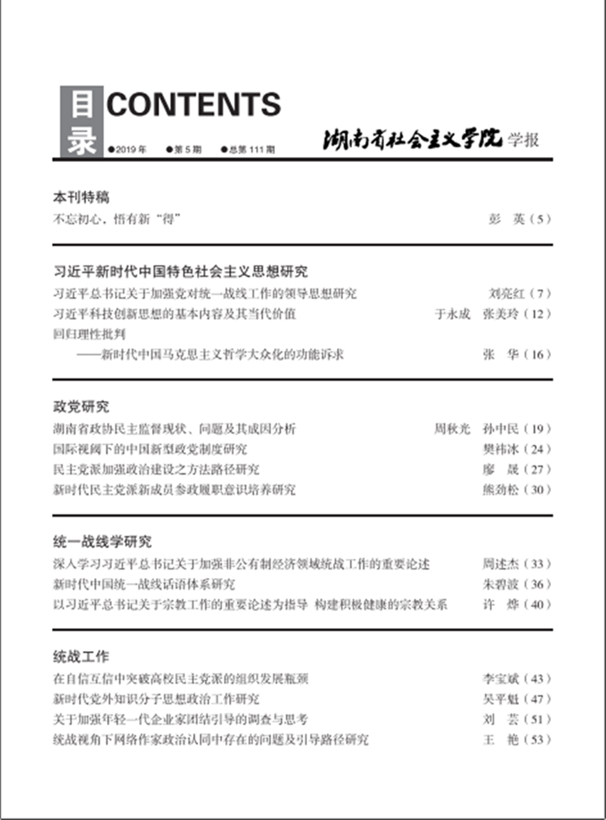 湖南社院学报2019年第5期封面及目录