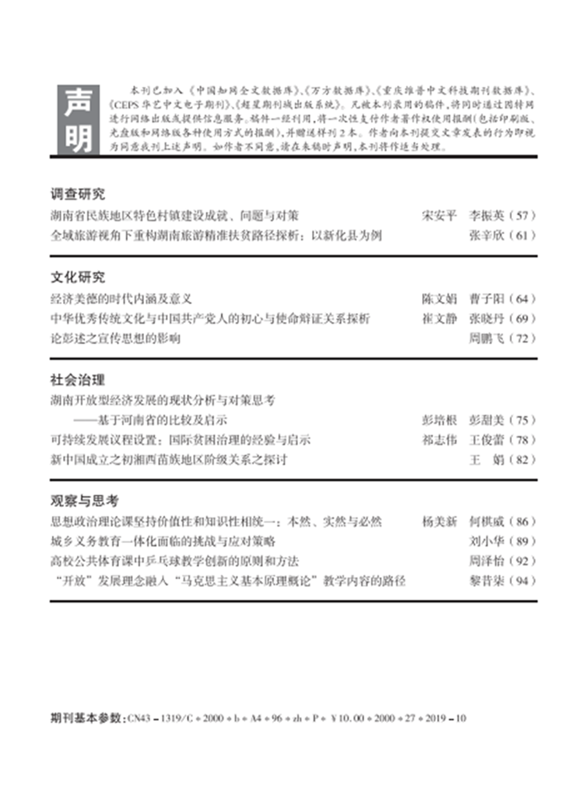 湖南社院学报2019年第1期封面及目录