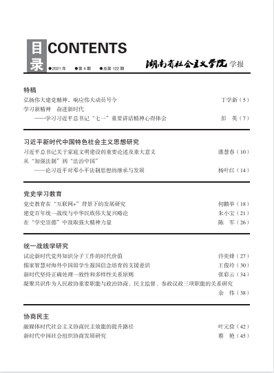 湖南社院学报2021年第4期封面及目录